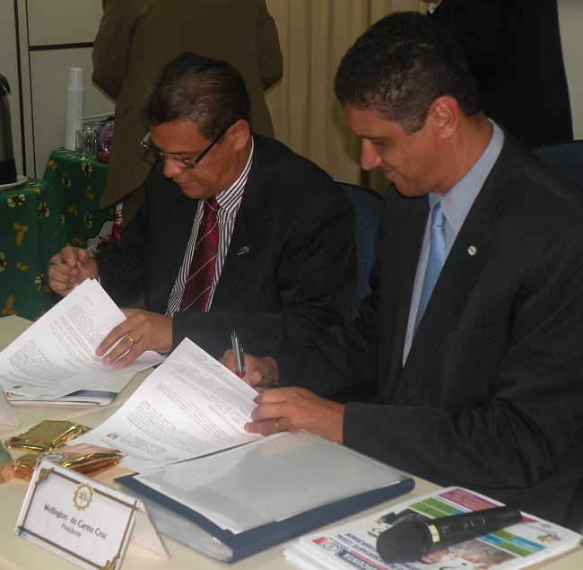 O convênio entre CRCBA e SINDICONTA-BA foi renovado na manhã da última sexta (13), durante a última reunião plenária do CRCBA em 2013. O principal objetivo do convênio é a realização de eventos de capacitação profissional, que é uma bandeira da classe contábil no estado da Bahia. O Presidente do CRCBA, Contador Wellington Cruz e o Presidente do SINDICONTA-BA, Marco Aurélio Moura, assinaram o termo de renovação do convênio e ratificaram em seus discursos a importância do trabalho conjunto em prol do profissional da Contabilidade.