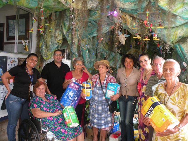 Na foto, funcionários do CRCBA ao lado dos moradores da Casa de caridade.