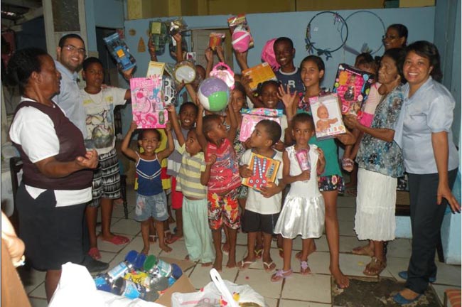 Já a Igreja Evangélica Shalon La Rhema, também localizada no bairro de Paripe, recebeu 50 latas de leite em pó de 400g e 60 brinquedos que foram distribuídos as crianças da organização .
