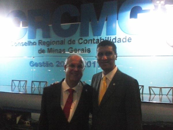 Na foto, o Presidente empossado CRCMG Marco Aurélio Cunha de Almeida e o Presidente Wellington Cruz (CRCBA). Na noite do dia 21/3, a Nova Diretoria do CRCMG tomou posse solenemente. O Presidente Marco Aurélio Cunha de Almeida e o Conselho Diretor eleito para o biênio 2014-2015, assim como os Conselheiros eleitos para o quadriênio 2014-2017 foram apresentados à sociedade. O Presidente Wellington Cruz (CRCBA) prestigiou a solenidade, representando a classe contábil baiana.