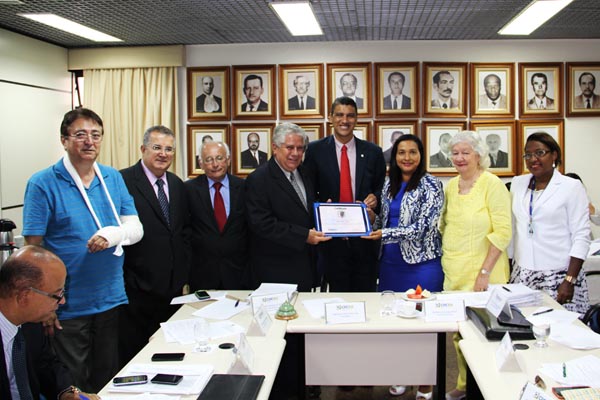 Delegado José Carlos Couto recebeu certificado das mão do Presidente Wellington Cruz, acompanhado da Conselheira do CFC Maria Constança, Conselheiros e Diretora Executiva do CRCBA .