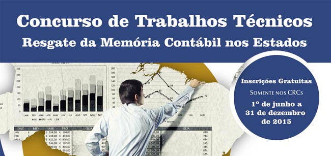 Profissionais da contabilidade e estudantes poderão participar do novo concurso do Conselho Federal de Contabilidade (CFC), realizado em parceria com os Conselhos Regionais de Contabilidade (CRCs). Com o tema “Resgate da Memória Contábil nos Estados”, o projeto pretende reunir, em um livro, 27 trabalhos com os principais fatos históricos da profissão contábil no País. Os interessados poderão se inscrever a partir do dia 1º de junho até 31 de dezembro de 2015, conforme edital publicado neste dia 14 de maio (seção 3, página 140) no Diário Oficial da União.