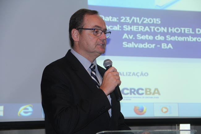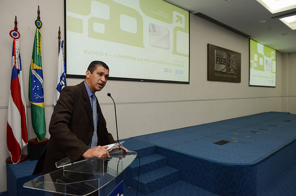 O presidente do Conselho Regional de Contabilidade do Estado da Bahia (CRCBA), Wellington do Carmo Cruz (foto), participou do Encontro com Contadores, na manhã da última quarta-feira (18), no auditório da Federação das Indústrias do Estado da Bahia (Fieb). O encontro – realização da Fieb, em parceria com a Confederação Nacional da Indústria (CNI), e apoio do CRCBA – abordou especialmente a implantação do Bloco K do Sped Fiscal – Sistema Público de Escrituração Digital Fiscal, a partir de janeiro de 2016.