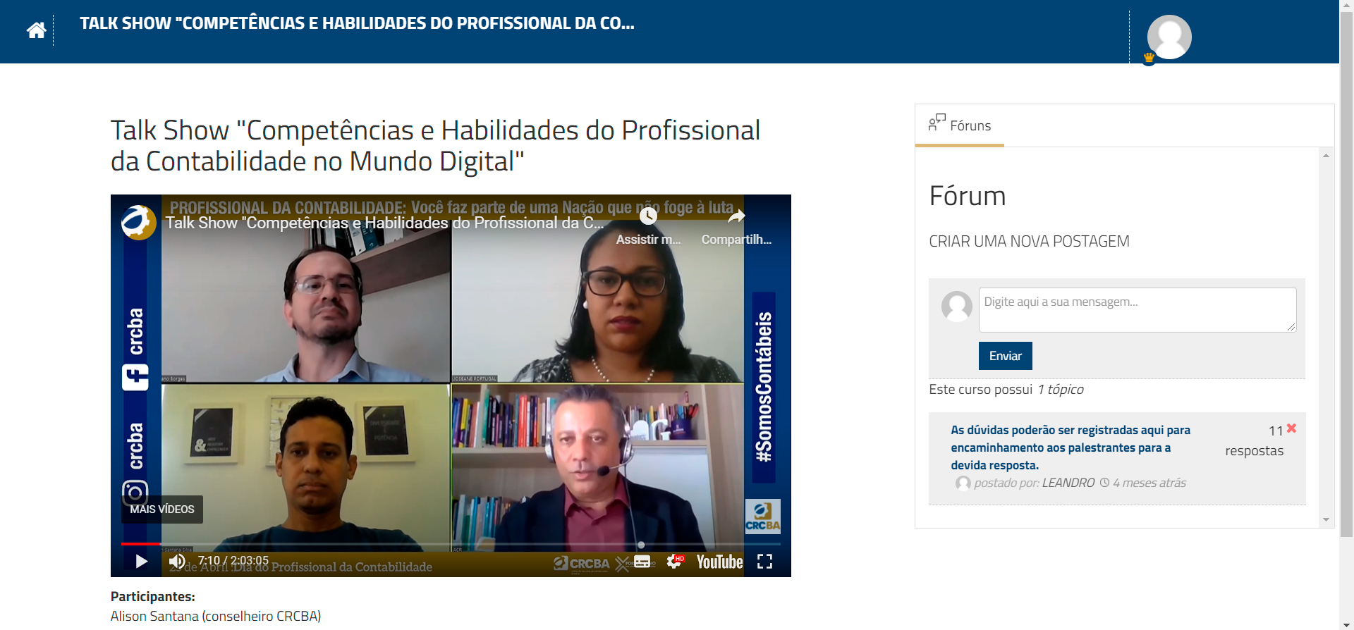 Desde o final do mês de março, quando se iniciou o isolamento social em âmbito nacional, o Conselho Regional de Contabilidade do Estado da Bahia promoveu 46 eventos de Educação a Distância, sendo 40 cursos e webinars (todos gratuitos) e 06 lives em seu perfil no Instagram. Nos cursos e webinars, já foram 17.745 participantes capacitados, com temas de grande relevância para os profissionais contábeis, sobretudo neste momento em que estão surgindo muitas alterações nas legislações fiscais, trabalhistas e previdenciárias, em resposta ao enfrentamento da crise econômica gerada pela pandemia.